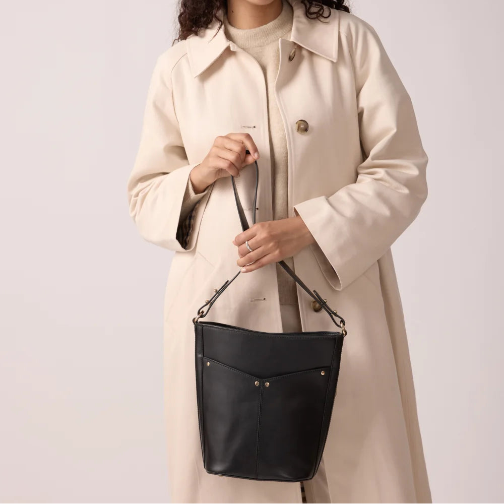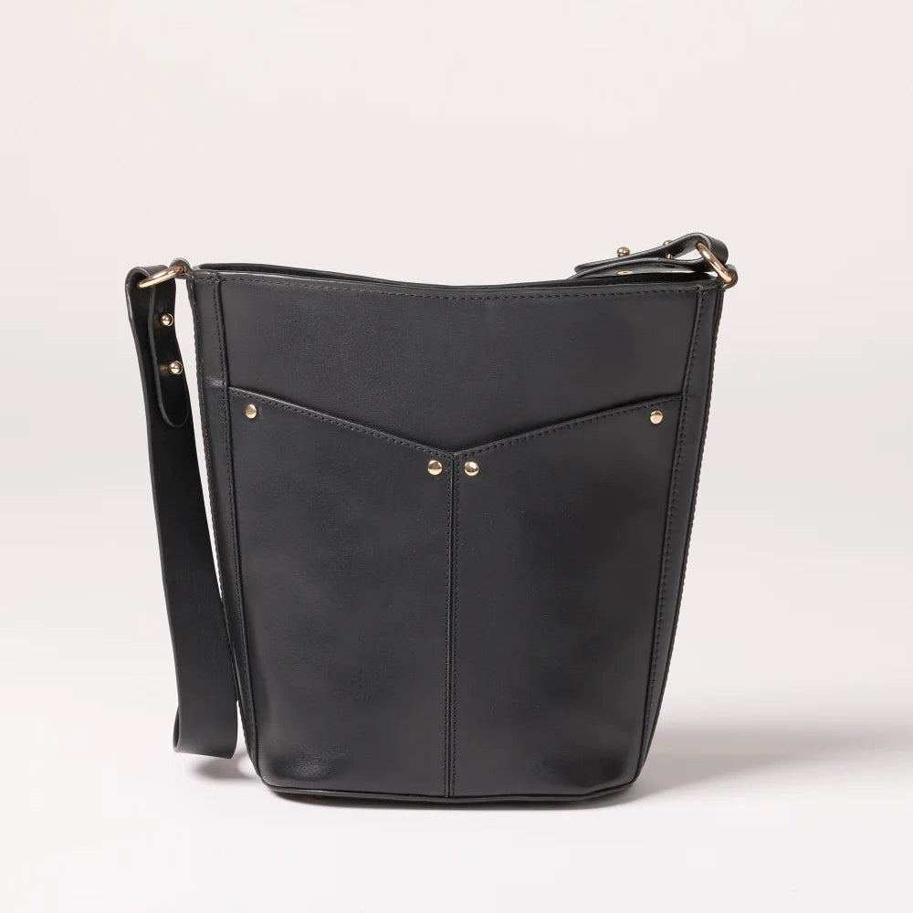 Poche plaquée avec bouton aimanté sur le devant et détails rivets décoratifs.