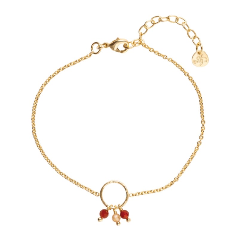 Ce bracelet doré présente un pendentif orné de 3 petites pierres de cornaline et de citrine.
