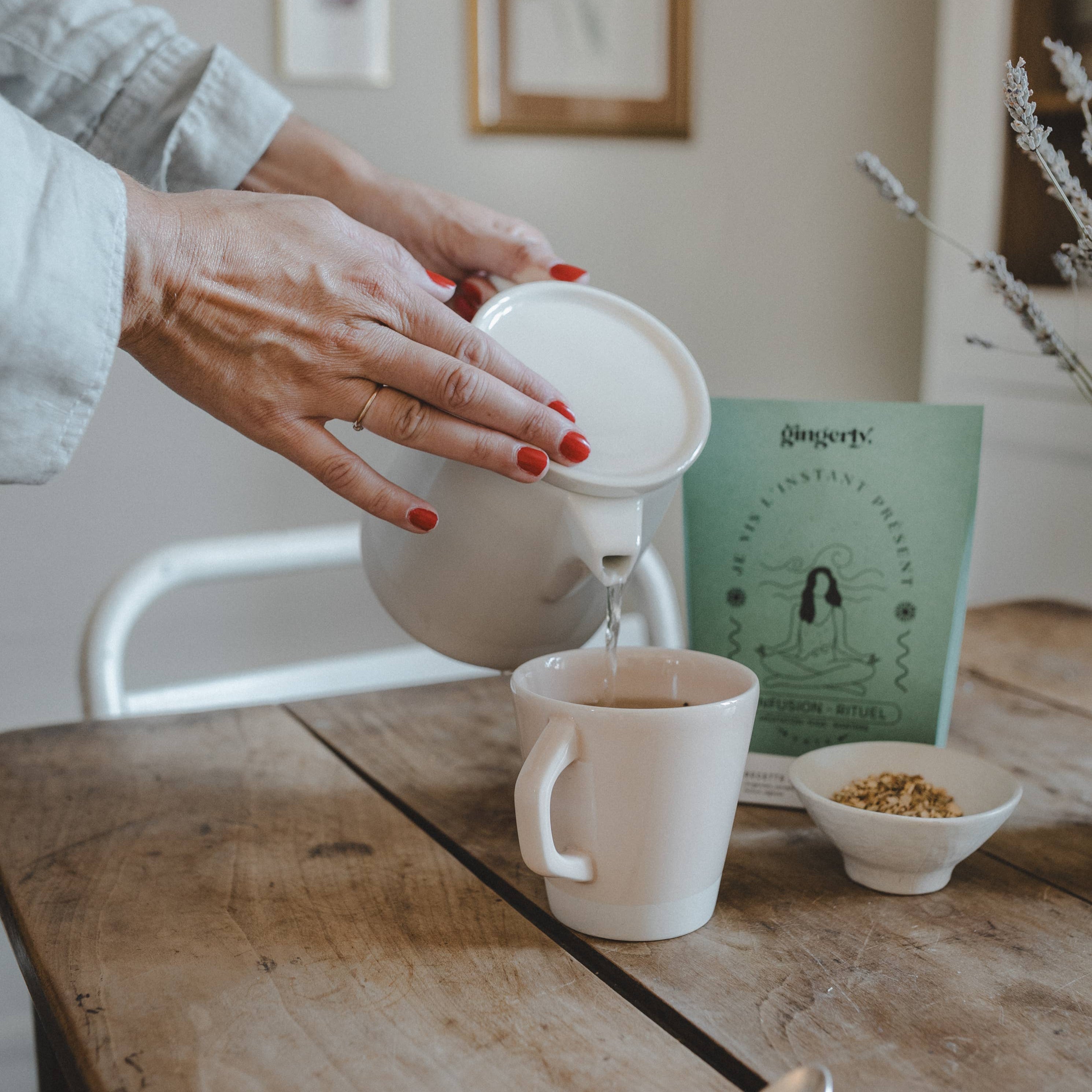 45 tasses + 45 rituels de bien-être à flasher au dos de la boîte (yoga, mantra, méditation)