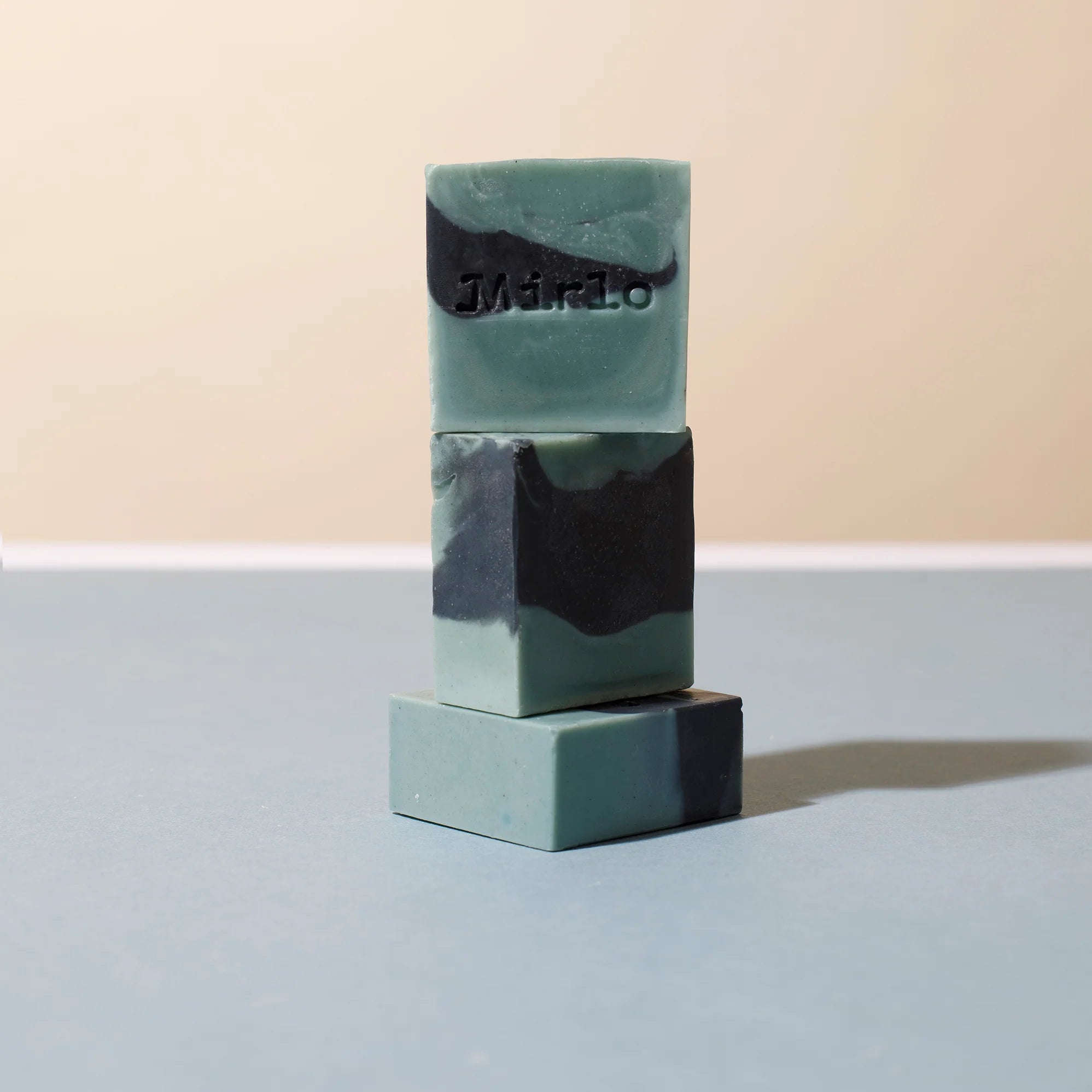 Savon artisanal, le cèdre et le charbon de Hêtre lui confèrent un pouvoir purifiant, tandis que l'huile de pavot bleu lui offre sa douceur. Les motifs de Xochipilli, aléatoires, se réinventent au fil des utilisations.