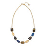 Le collier Excessive est une pièce audacieuse et colorée. Ce collier fait à la main est composé de grandes pierres précieuses lisses d'oeil de tigre, de quartz fumé, de lapis-lazuli et de citrine, combinées à des perles de verre de couleur or. La combinaison de ces pierres apporte gratitude, ancrage, et intuition. Le collier a une longueur réglable de 42 à 45 centimètres et se ferme à l'aide d'un fermoir plaqué or. Il est parfait pour être porté seul ou avec des bijoux assortis.