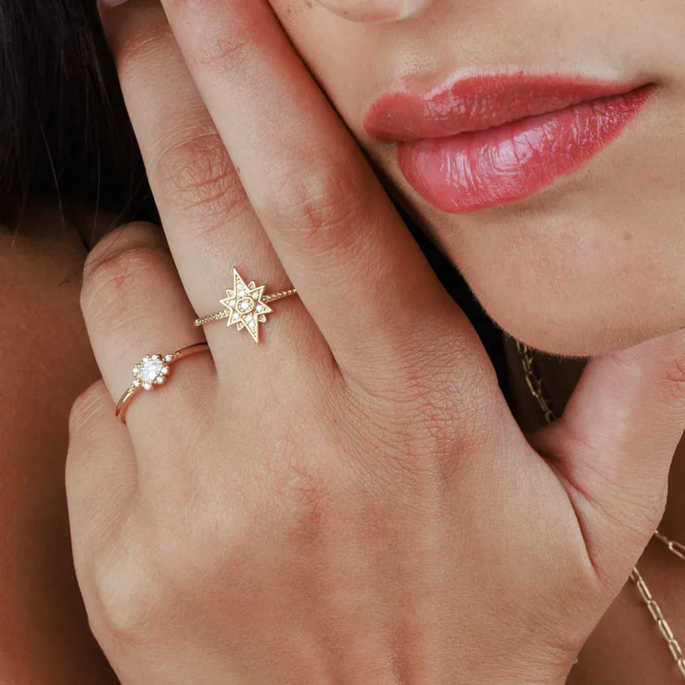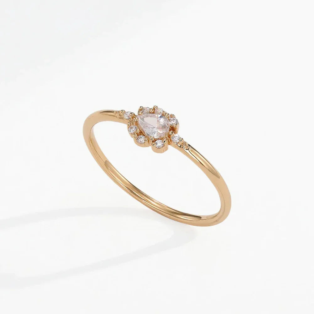 Une belle bague, décorée de pierres de zirconium claires.