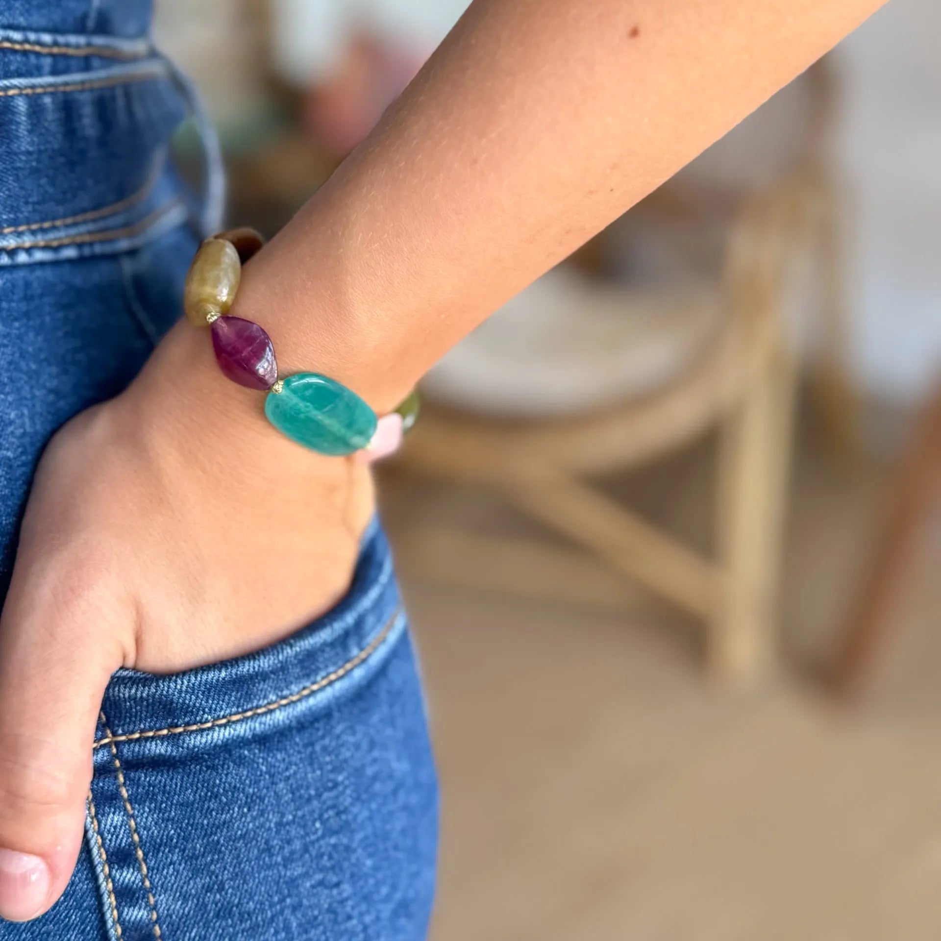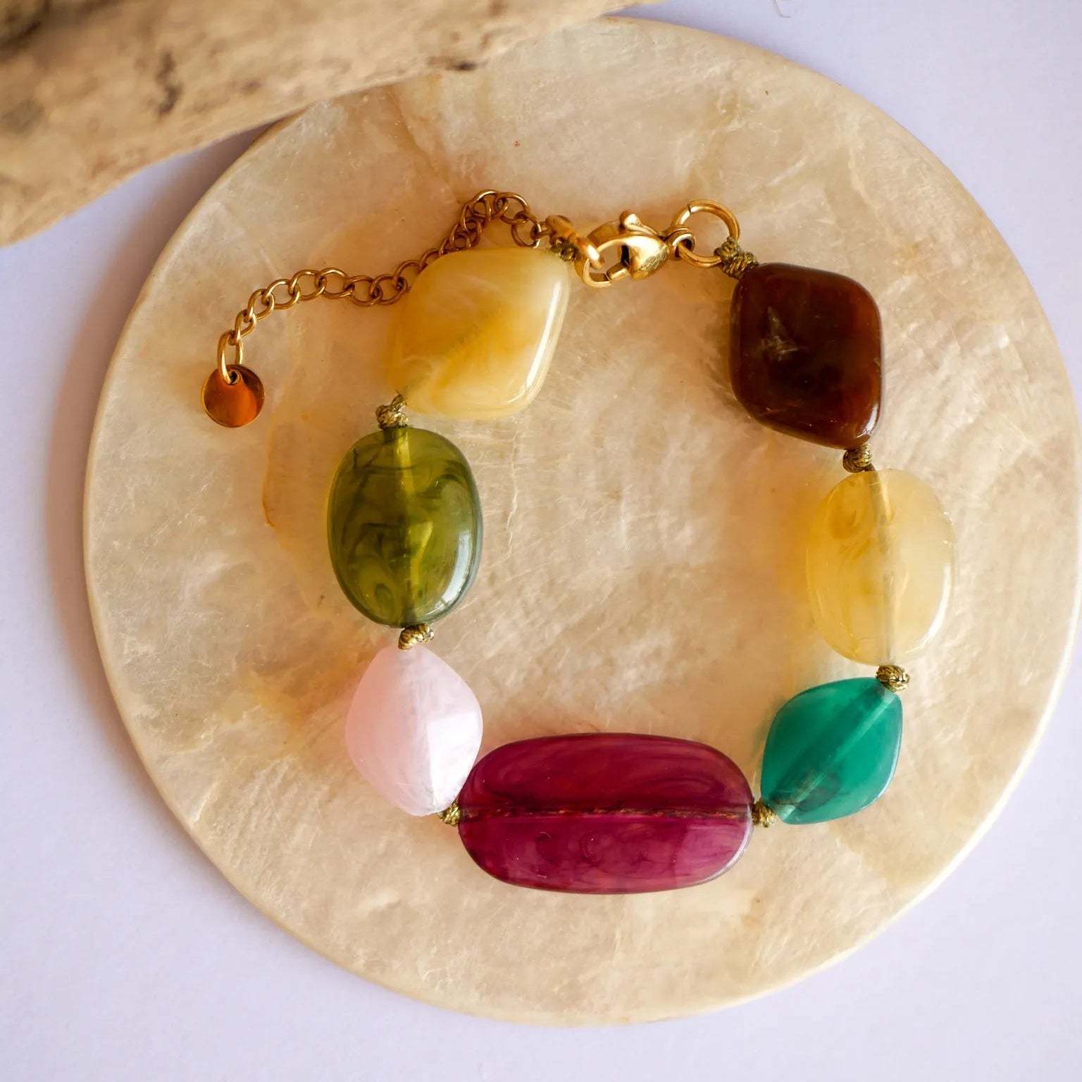 Perles en résine et fil linhasita, finitions acier inoxydable