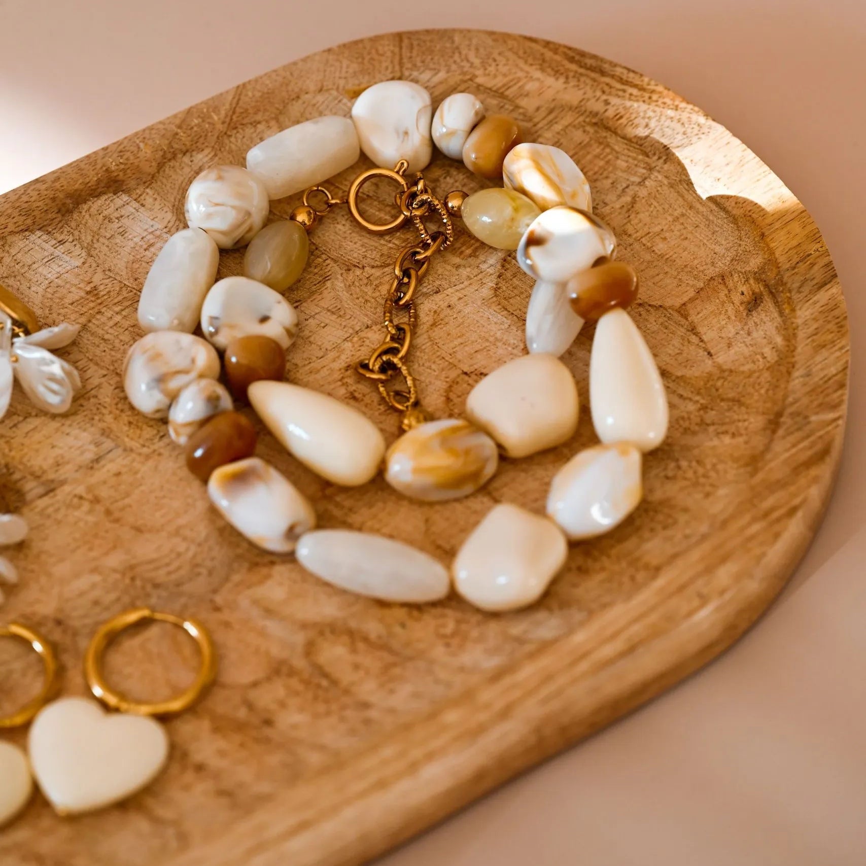 Lorsque vous ne le portez pas, conservez votre bijou dans son pochon ou son écrin, à l’abri de la lumière et de l'humidité. Un chiffon doux et sec suffira à raviver l’éclat de la finition, qui se patine légèrement avec le temps. Les pierres naturelles sont sensibles - nous vous recommandons d’attendre 10 minutes avant de mettre vos bijou, si vous avez utilisé un produit cosmétique.