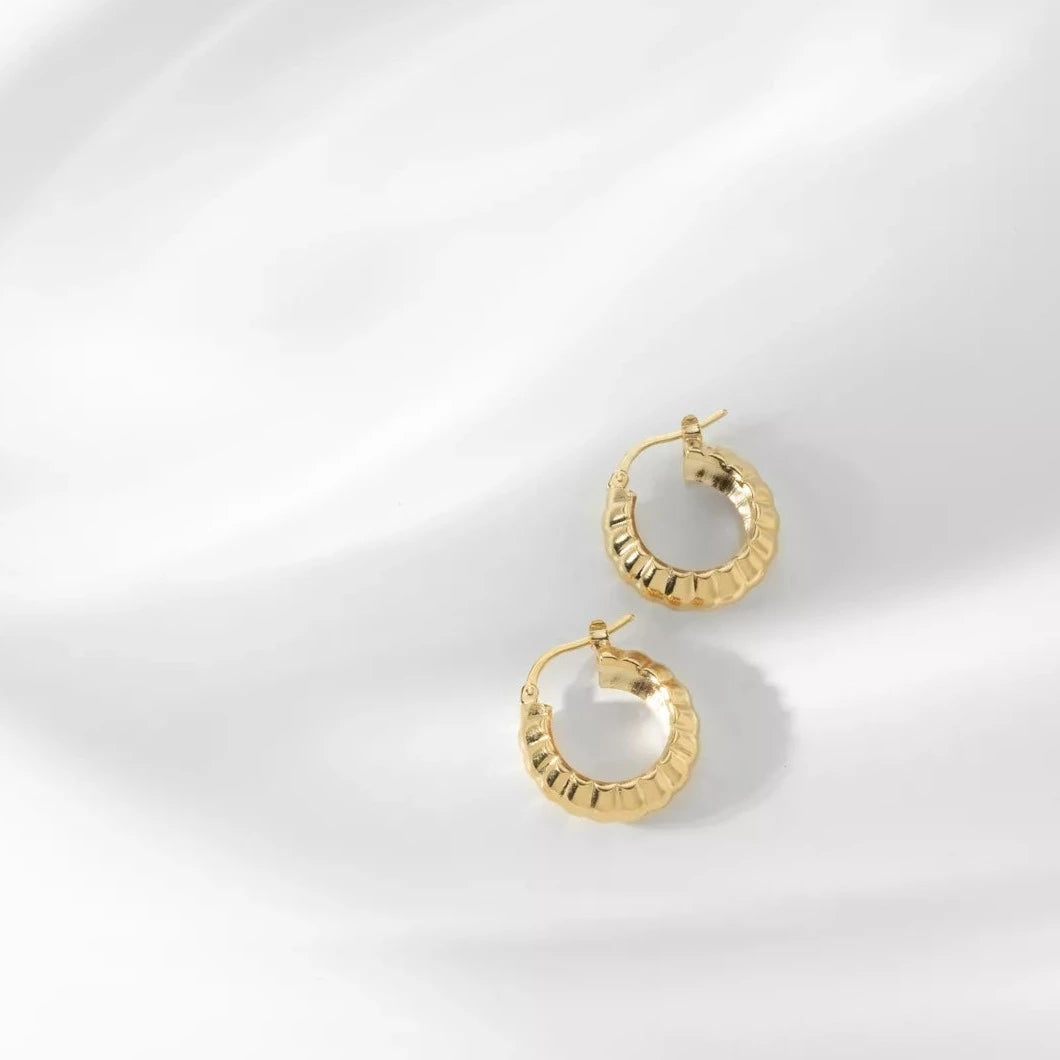 Elles sont en laiton et étain, dorées à l'or fin 24k. Leurs tiges d'attache et fermoirs sont en argent 925 doré à l'or fin 24k, pour éviter tout risque d'allergie. Tous les bijoux sont garantis sans plomb, sans nickel, sans cadium